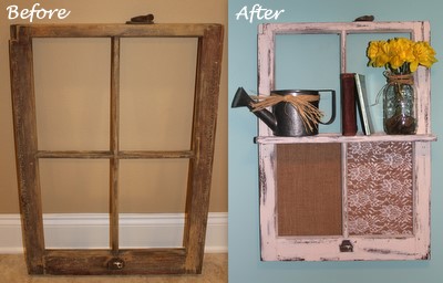 And- voila! A vintage window frame shelf of your own! I