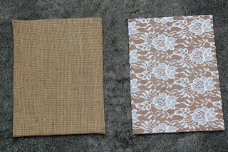favorite fabrics- burlap and lace- and got to work. I ended up covering