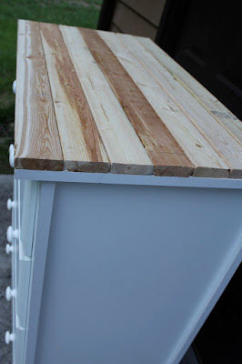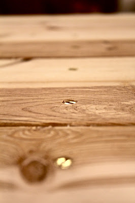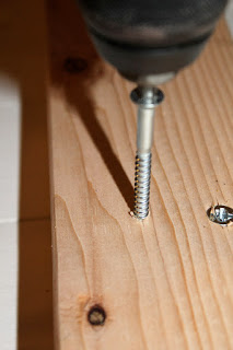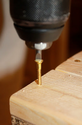 Once you’ve lined the wood up how you want it, secure your legs by drilling 6 screws into each post. Place two screws at the top of your slat, two in the middle, and two at the bottom.