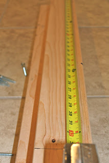 First off, make sure your 2x4's are flat on the bottom, so that they will stand up level on the ground. Now lay your door face down on the ground (so that the back is facing up), and line up where you will connect your 2x4's. You are essentially just attaching the wooden posts to the back of your door to act as legs. It’s a good idea to have the wood run almost to the top of your door for added support. Most importantly, align your wood so that the legs match the height of your bed (so your wooden legs won’t be visible). I used a tape measure to do this, and I drew a line where the wood should align with the edge of the door.