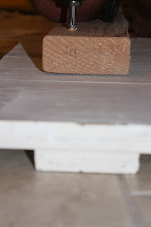 -two 2x4's to serve as posts for your headboard **You’ll need to measure the height of your bed and door (height of door when laying horizontally, that is) to figure out what size pieces of wood to buy.
